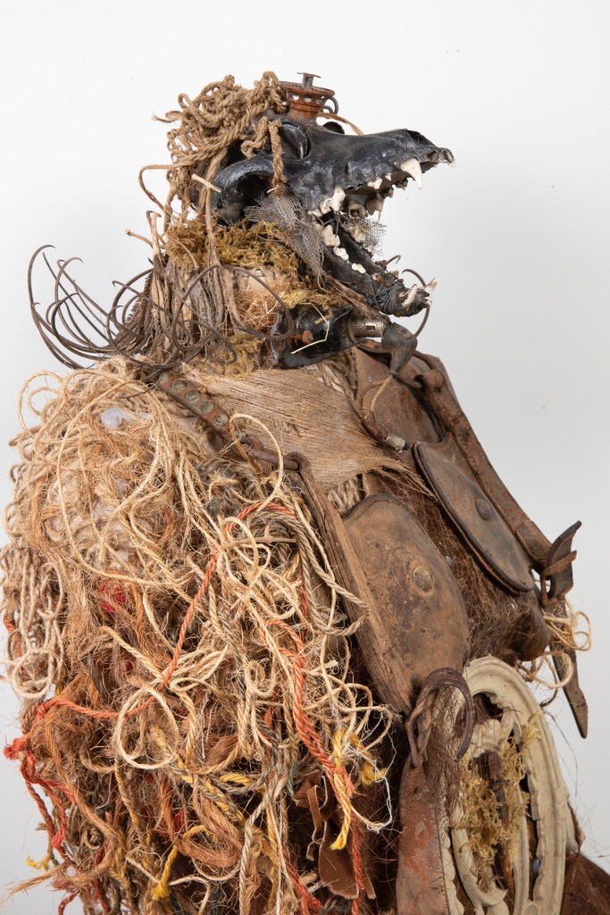 Through an obsessive accumulation of distressed relics, vintage photos of people and animals long gone, cast off rusty parts, broken jewelry, vintage fabrics and lace, bones, branches, moss, and thorns: these are some of the materials I transform into my art supplies.